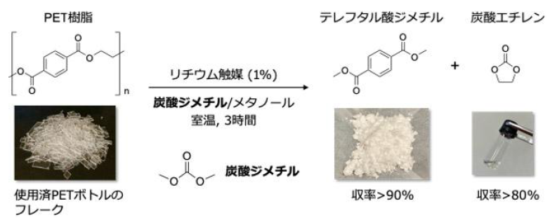 図1. PETの分解によるテレフタル酸ジメチルと炭酸エチレンの合成